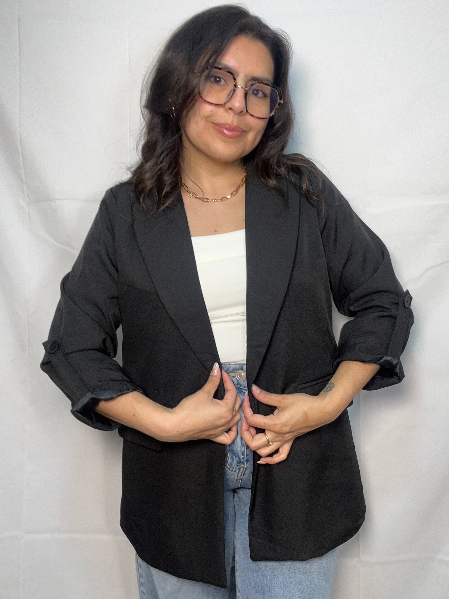 Eleva tu estilo con este blazer de alta calidad, diseñado para brindar elegancia, confort y un acabado sofisticado. Su color negro clásico lo convierte en una prenda versátil y atemporal, ideal para crear múltiples combinaciones, desde looks formales hasta outfits más casuales y modernos.