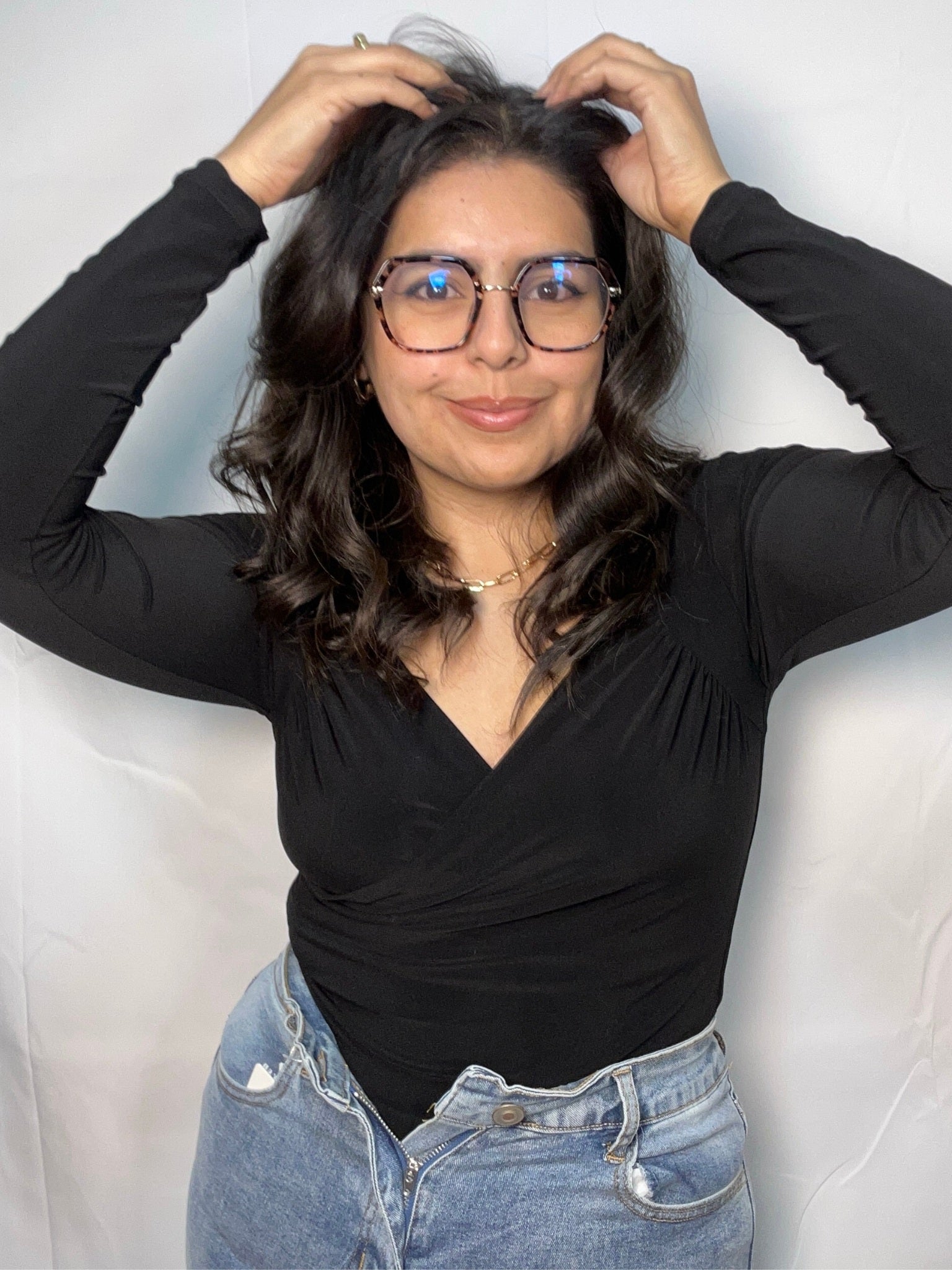 El body Selena negro manga larga es la combinación ideal entre estilo y comodidad. Diseñado con cuello en V cruzado, realza el busto de forma favorecedora y aporta un toque sofisticado a cualquier look. Su tela suave y elástica se adapta perfectamente a tu figura, brindándote comodidad durante todo el día.