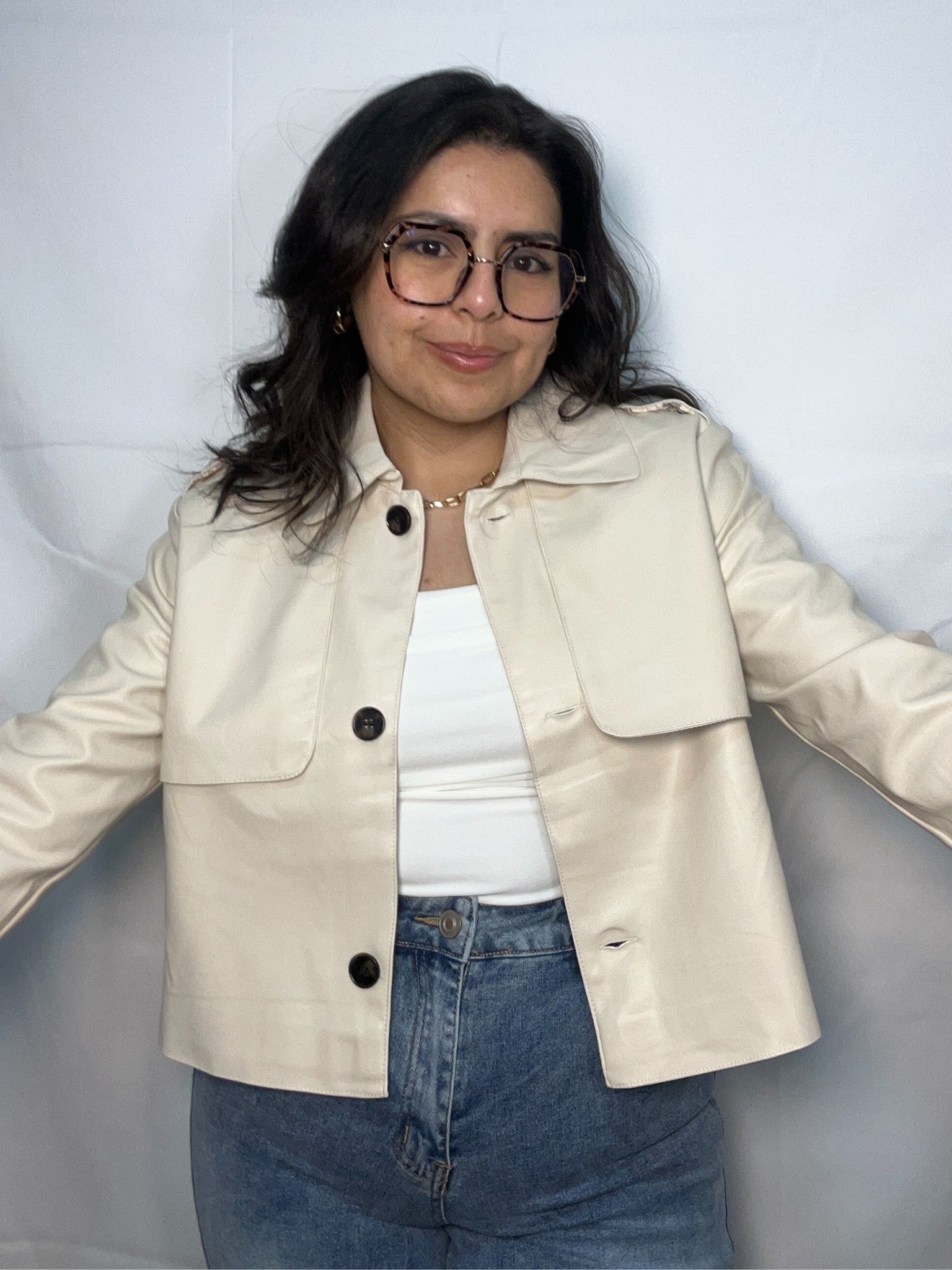 Eleva tu estilo con esta chaqueta de eco cuero color crema, diseñada con material premium que ofrece un acabado suave, resistente y de gran durabilidad. Su tono neutro la convierte en una prenda versátil, perfecta para combinar con cualquier look, desde outfits casuales hasta conjuntos más elegantes.