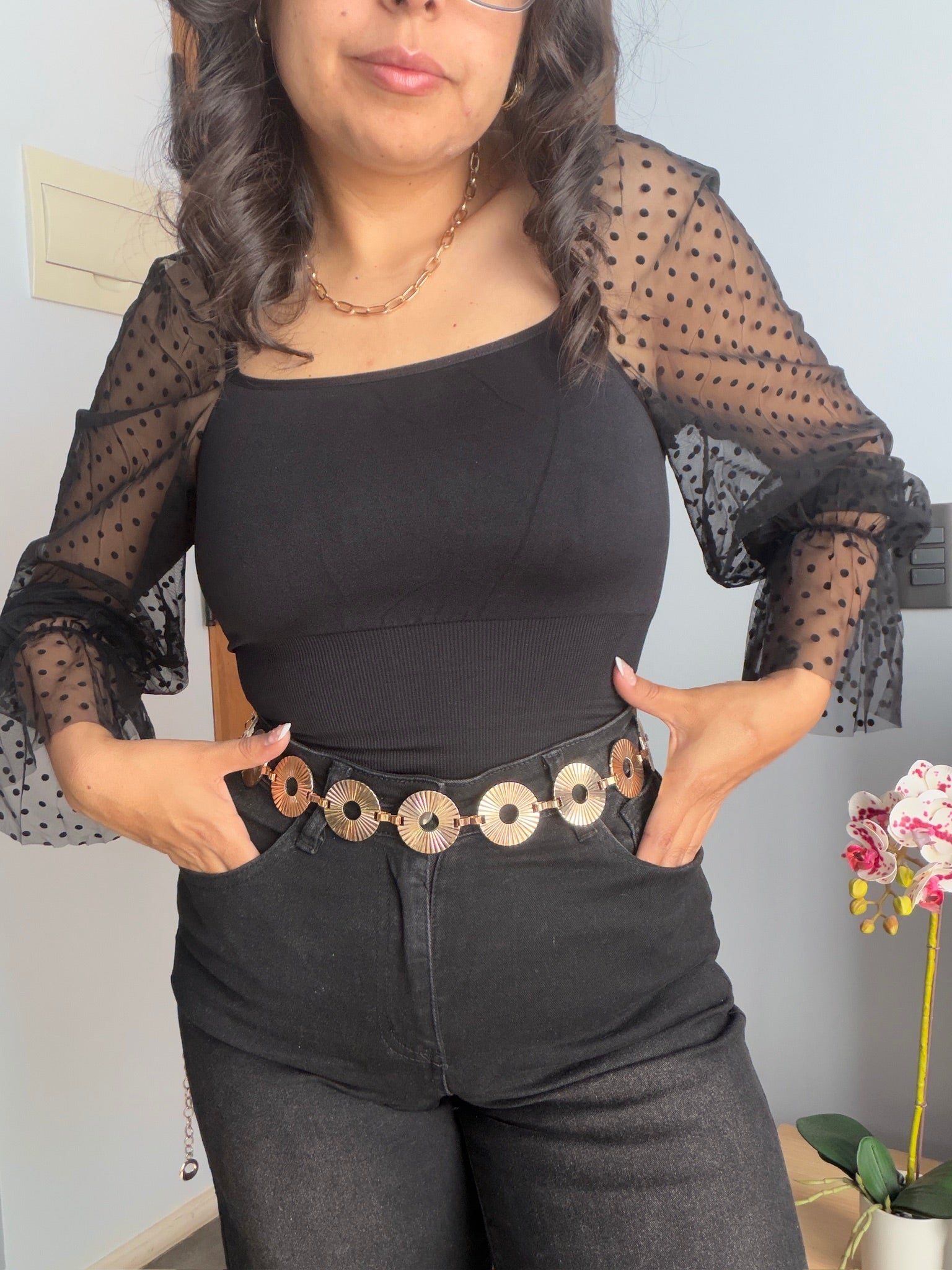 Fabricado en metal resistente pero liviano, es cómodo de llevar y cuenta con un sistema ajustable para adaptarse a distintos tipos de cuerpo y estilos. Un accesorio versátil que combina con atuendos casuales, elegantes o de fiesta.