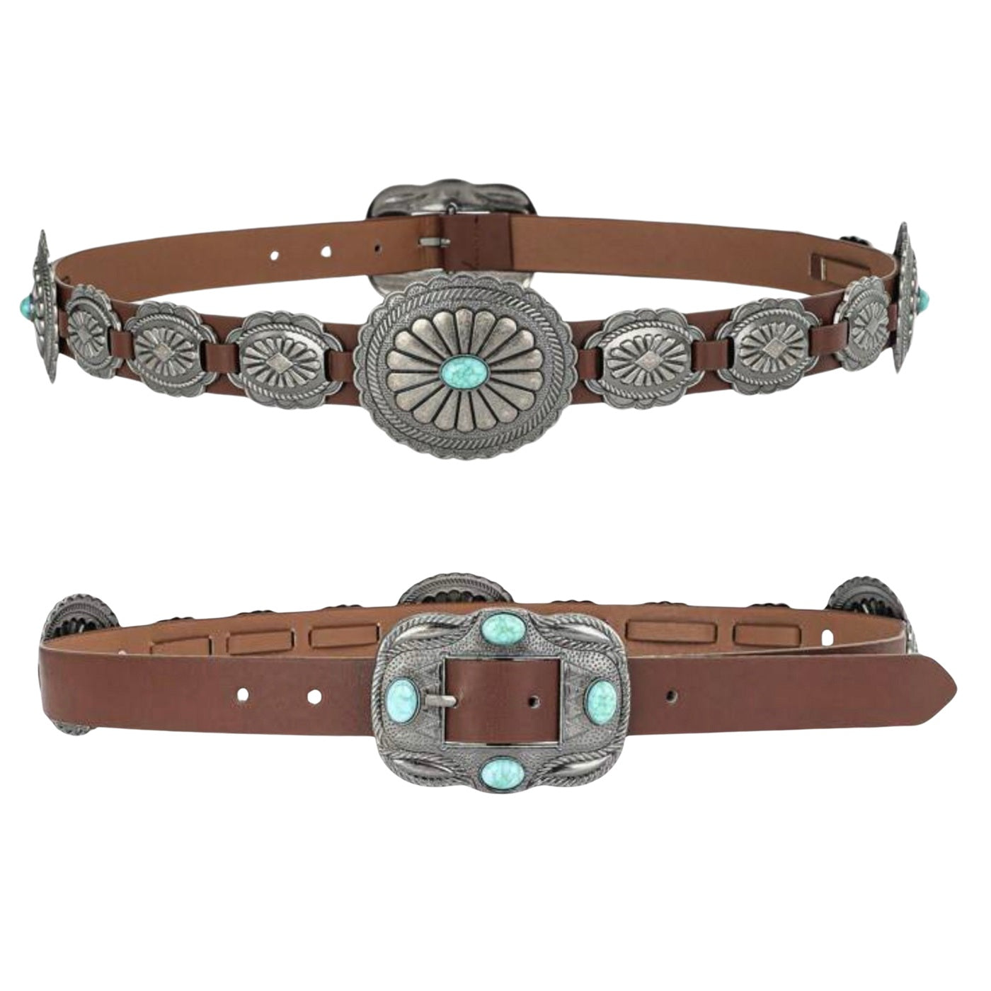 Cinturon Vaquero Turquesa Cafe 115 CM.